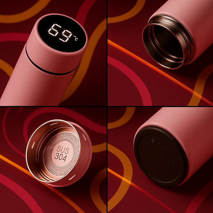 Stay hydrated in style with this innovative thermal bottle that keeps your drinks at the ideal temperature, featuring a smart display for effortless monitoring.